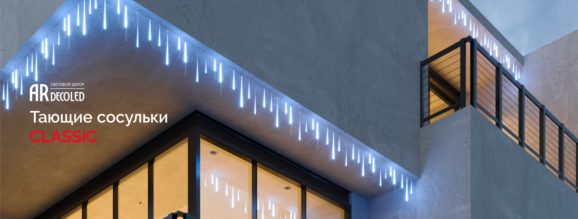 Гирлянды «Тающие сосульки» серии CLASSIC создадут праздничную атмосферу в торгово-развлекательных центрах, магазинах, кафе или у вас дома. Необязательно ждать зимних праздников — подберите гирлянду с понравившемся цветом свечения и создайте волшебную атмосферу в любое время года.