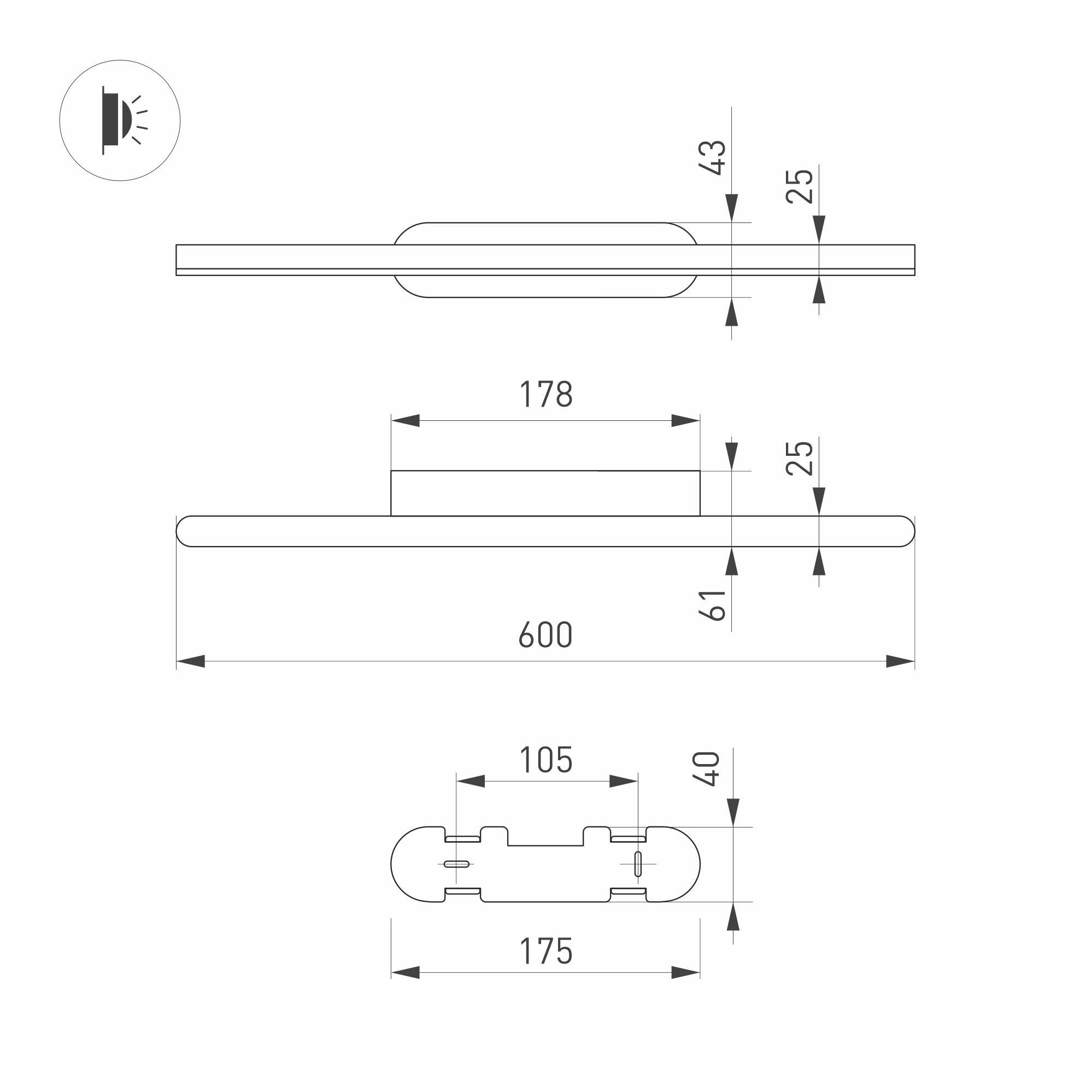 Декоративный настенный светильник. Мощность13 Вт, св. поток 600 лм, 50 лм/Вт, теплый 3000 K, CRI>90, угол 120°, напряжение питания 230 В. Белый фигурный корпус из алюминия, экран из матового поликарбоната, степень защиты IP54. Размер: длина 600 мм, ширина 60 мм, высота 42 мм. Размер светоизлучающего модуля: длина 600 мм, ширина 25 мм, высота 25 мм Монтаж накладной. Пульсация <0,5.