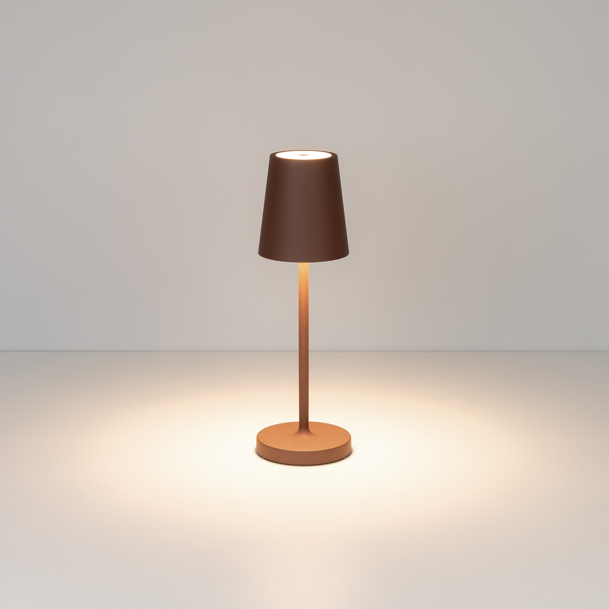 Настольный светодиодный светильник DAISY со встроенным аккумулятором 1.5 Вт. Светильник с регулируемым цветом свечения (2200-2700-3000 К) и световым потоком 110-130 лм станет отличным решением для локальной подсветки. Благодаря степени защиты IP54 светильник можно использовать как в помещениях, так и под открытым небом. Встроенная Li-ion аккумуляторная батарея емкостью 1500 мАч способна обеспечить до 90 часов автономной работы светильника. Последовательное нажатие сенсорной кнопки позволяет включить/выключить светильник и выставить нужный уровень яркости и цвета свечения. Зарядка осуществляется через герметичный USB-порт. Зарядный кабель входит в стандартный комплект поставки.
